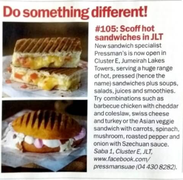 Each of Pressman’s product is refreshingly distinct yet authentic. With freshly baked signature breads, marinated stuffing, high quality ingredients and always prepared fresh to order, Pressman’s menu is uniquely hand-crafted to perfection and always served HOT FRESH & PRESSED; Our Pressmen are always ready to serve every master-piece on the menu that comes straight “Off the Press… From the Heart”