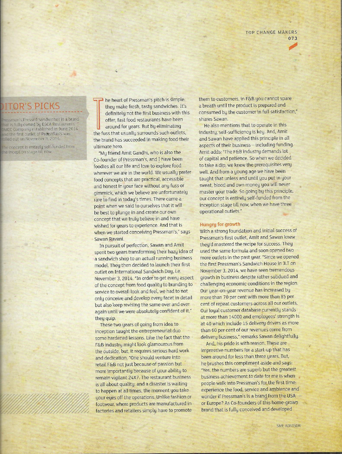 Pressman’s should be known as the best sandwich brand not only for its food and service but also for its inter-person bonding with every community it has its foot-print in.