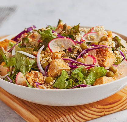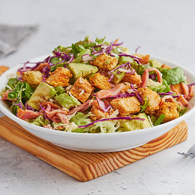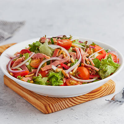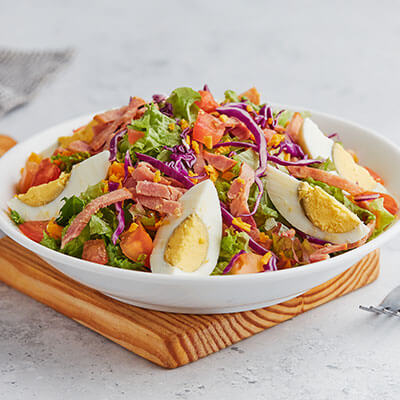 Our MenuBest Delivered Categories HomeMain Menu Beverages Freshly Made Salad Combos Freshly Made Salads Party Packs Pressed Desserts Pressed Platters Pressed Sandwiches & Wraps Sandwich & Wraps Combos Side Orders Chicken Garden Salad Mixed lettuce, roasted chicken cube, Fre Bigger AED 32 Bean Salad (V) Mixed lettuce, red kidney, chick peas, s Bigger AED 28 Chicken Noodle Salad Mixed lettuce, roasted chicken cubes, no Bigger AED 36 Chicken Quinoa Salad Mixed lettuce, roasted chicken cubes, qu Bigger AED 36 The Bombay Special Sandwich Bowl (V)(N) (Spicy) Mixed lettuce, Bombay mix, sweet corns, Bigger AED 30 Tuna Salad Mixed lettuce, tuna chunks, red cabbage Bigger AED 30 Nicoise Salad (VE) Mixed lettuce, green beans, red onion ju Bigger AED 32 Mediterranean Salad (V) Mixed lettuce, feta cubes, halved cherry Bigger AED 30 Honey Glazed Salad (N) Mixed lettuce, red bell pepper julliene, Bigger AED 36 Halloumi Salad Mixed lettuce, baby spinach, yellow cher Bigger AED 32 Chicken Avo Bacon Sandwich Bowl Mixed lettuce, roasted chicken cubes, av Bigger AED 40 Chicken Caesar Salad Romaine lettuce, roasted chicken cubes, Bigger AED 28 Bacon & Egg Press Sandwich Bowl Mixed lettuce, roasted turkey bacon, egg Bigger AED 34 Arabian Salad (V) Mixed lettuce, halved cherry tomato, chi Bigger AED 32 Egg And Cheese Press (VE) Eggs, Cheddar, Mozzarella, Swiss cheese, Diced Tomatoes. Order Now Currently, we are not taking orders.