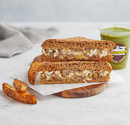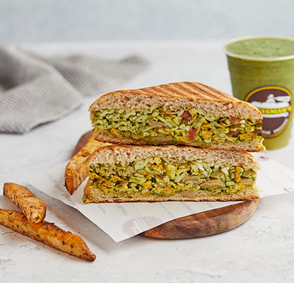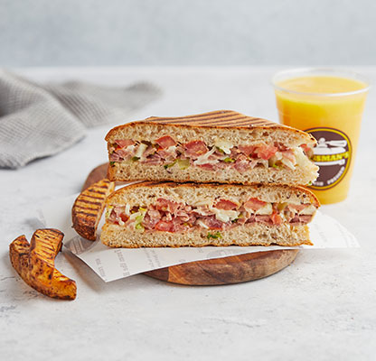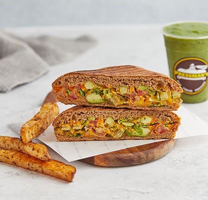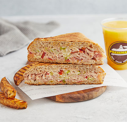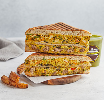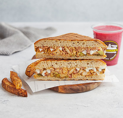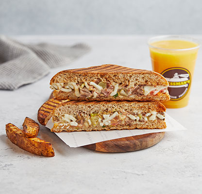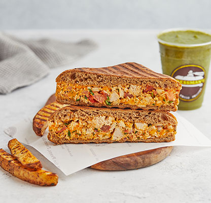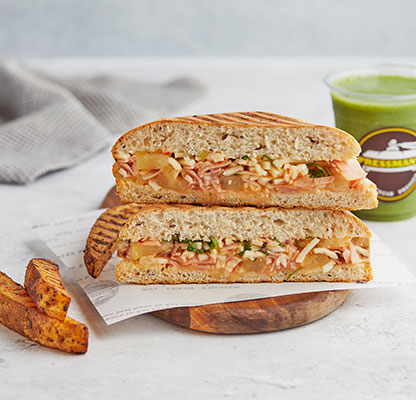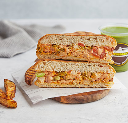 Our MenuBest Delivered Categories HomeMain Menu Beverages Freshly Made Salad Combos Freshly Made Salads Party Packs Pressed Desserts Pressed Platters Pressed Sandwiches & Wraps Sandwich & Wraps Combos Side Orders Pressman’s Heat VEG (Very Spicy) Corn, peas, potatoes, diced fresh green Price AED 49 Pressman’s Heat Chicken (Very Spicy) A super spicy, double decker sandwich! W Price AED 53 Pressman’s Heat – Regular ( Very Spicy) A super spicy, double decker sandwich! W Price AED 53 Philly Cheese Steak Roasted beef steak, mozzarella cheese, r Price AED 47 The Italian Turkey ham, Italian salami, roasted beef Price AED 47 The Delmonico Steak Inspired by the famous New York steak! R Price AED 47 Chicken Avo Bacon Roasted chicken, ripe avocado, roasted t Price AED 47 Spicy Paneer Twist (V) (Spicy) A blast for vegetarians! Fresh cottage c Price AED 46 Halloumi & Bacon Halloumi & bacon, roasted turkey bacon, Price AED 47 The Mexican (Spicy) Roasted chicken, cheddar cheese, tomato, Price AED 42 The Hawaiian Turkey ham, fresh pineapple, parsley, mo Price AED 42 Spicy Chipotle Chicken (Spicy) Our take on the very popular chipotle fl Price AED 40 Mediterranean Veg (V) Selection of roasted mix vegetables and Price AED 39 The Royal Paneer Tikka (V)(N) (Spicy) Fresh cottage cheese finely mixed with o Price AED 45 BBQ Chicken Roasted chicken fillet, swiss cheese, ca Price AED 39 Chicken Tikka (N) (Spicy) "A local favorite! Roasted chicken marin Price AED 37 Buffalo Chicken (N) (Spicy) Roasted chicken fillet, mozzarella chees Price AED 38 Turkey & Swiss Swiss cheese, turkey ham, diced tomatoes Price AED 42 Tuna Salad Shredded tuna chunks, tuna salad mix (co Price AED 38 Fiesta Chicken Roasted chicken fillet, fresh cilantro, Price AED 38 The Bombay Special (V)(N) (Spicy) Corn, peas, potatoes, diced fresh green Price AED 38 Caprese (V)(N) An Italian classic! Mozzarella cheese, d Price AED 38 Leafy Garden (VG) Our very first vegan sandwich! With fres Price AED 37 Cheese Chili Corn (V) (Spicy) Cheddar cheese, corn, jalapenos, diced f Price AED 37 Triple Cheese (V) A classic favorite! Cheddar, swiss, mozz Price AED 36 Pesto Turkey Omelet (N) Omelet, sliced turkey ham, mozzarella ch Price AED 43 Bacon & Egg Press Roasted turkey bacon, egg, cheddar chees Price AED 41 Veg Breakfast Press (V) (Spicy) Ripe avocado, cheddar cheese, jalapenos, Price AED 37 Grilled Cheese Omelet (VE) Omelet, cheddar cheese, diced tomatoes & Price AED 37 Egg and Cheese Press (VE) Eggs, cheddar, mozzarella, swiss cheese, Price AED 37 Egg And Cheese Press (VE) Eggs, Cheddar, Mozzarella, Swiss cheese, Diced Tomatoes. Order Now Currently, we are not taking orders.